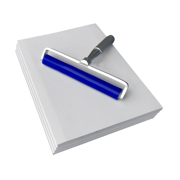 撕掉粘尘纸上的保护纸,将静电除尘辊在粘尘纸上单方向推动,即可将静电除尘胶辊上的灰尘杂质转移到粘尘纸本上,达到清洁胶辊辊面的目的。当粘尘纸胶面污染严重,粘度下降时应及时更换下一层,以保证除尘效果。
