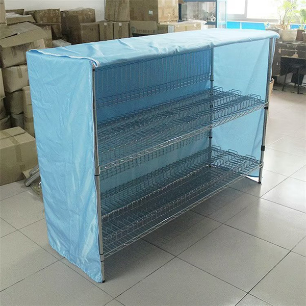 防静电防尘罩材质是由特种纤维绦纶长丝 5mm直条、5mm网格、2.5mm导电绸制作而成的,防尘罩具体消除静电的独特功能。 防尘罩主要用来作为物料箱的防护,物料车的防护,仪器设备的防护。 防尘罩颜色:白色,蓝色,粉红色,黄色,灰色,绿色,藏青色等。 防静电防尘罩可以根据客户需要定制任意规格尺寸。